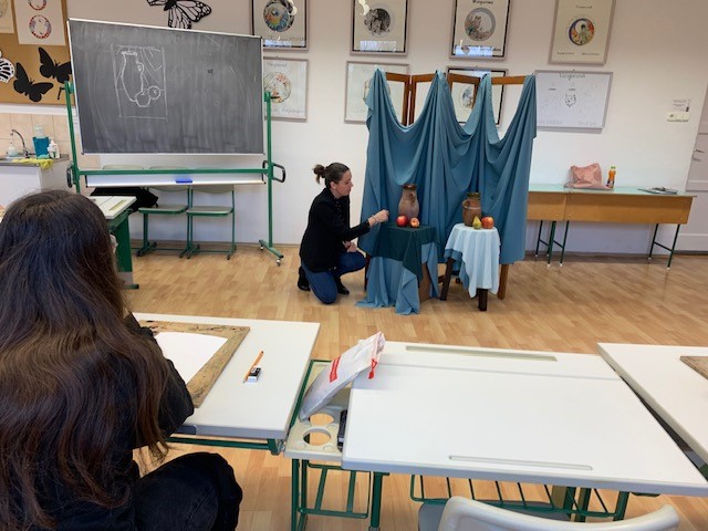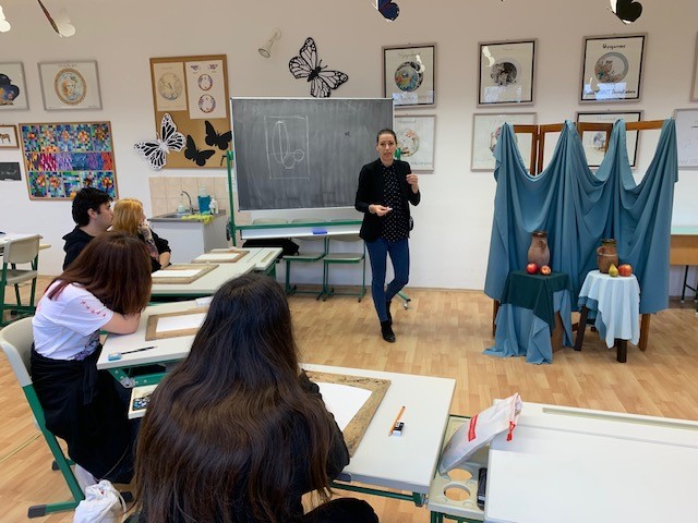 A felvételi előkészítő két foglalkozásán jó hangulatban munkálkodtunk. Az első alkalommal a mintázási feladatot gyakoroltuk, miközben Farkas Zsolt szakoktatótól a kivitelezéshez javaslatokat, hasznos ötleteket kaptunk és ügyes fogásokat leshettünk el! A foglalkozás végére egyéni kreatív ötletek alapján egyedi darabok is készültek! A 2. foglalkozáson Csitári-Szaller Andrea tanárnő útmutatásait követtük a beállított csendélet kompozíciójának felrajzolásában és megfestésében!